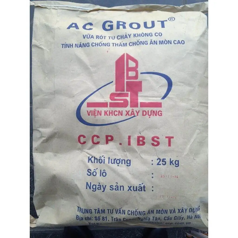 Nếu muốn bề mặt sau thi công phẳng thì không thể nào bỏ qua AC Grout. Đây là loại vật liệu gốc xi măng, có khả năng tự chảy, tự san phẳng cũng như chống thấm, chống ăn mòn cao. Thường được sử dụng ở gối cầu, bệ móng máy, bệ đường ray, mạch ngừng thi công,...