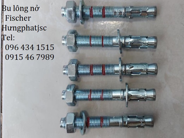 Bu lông nở fischer được sản xuất tại Đức bằng vật liệu thép có cường độ 5.8, mạ kẽm với độ dầy ≥5 mm, mỗi bu lông có 1 con tán và 1 lông đền.