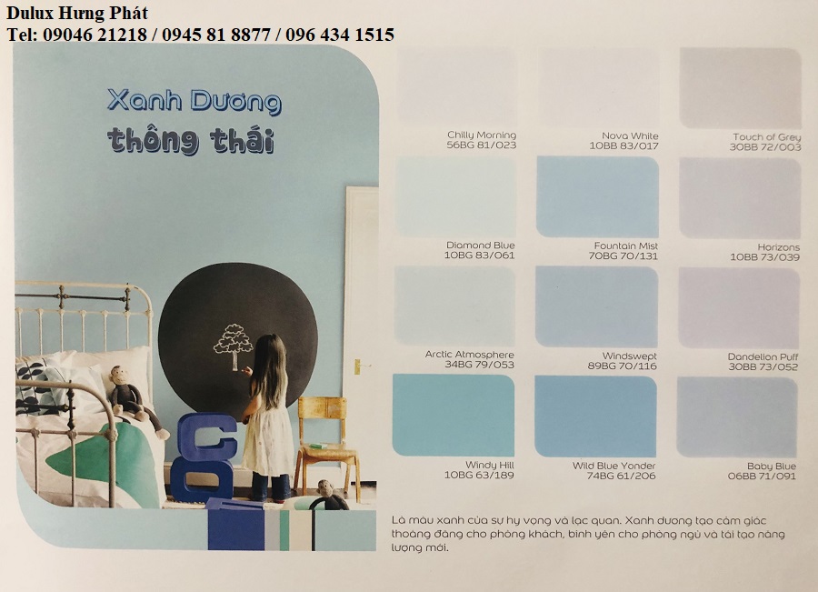 Màu sơn nội thất cao cấp Dulux Easy clean xanh dương thông thái