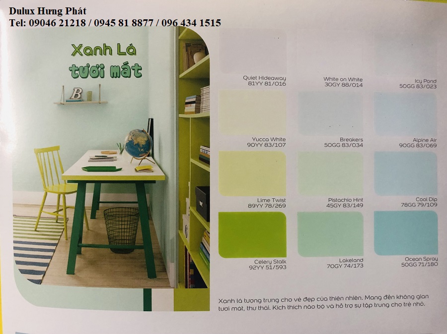 Màu sơn nội thất cao cấp Dulux Easy clean xanh lá tươi mát