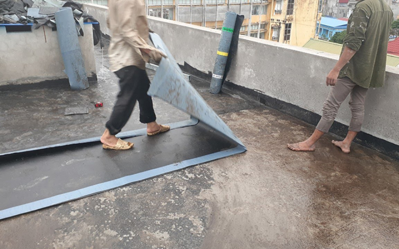 - Đặt màng vào vị trí cần chống thấm và căng lớp màng để đảm bảo diện tích vừa đủ, sau đó cuộn ngược lại.