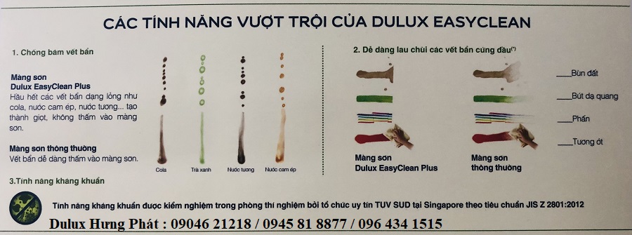 2. Sơn nội thất Dulux EasyClean A991 Lau Chùi Hiệu Quả bề mặt mờ có khả năng chịu lau chùi gấp 10 lần các sản phẩm sơn thông thường.