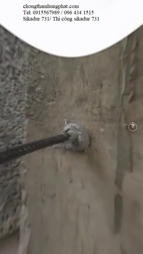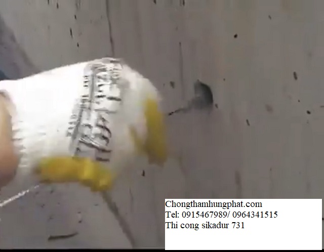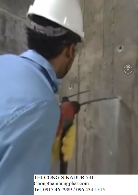 Tiến hành cắm thép đã bôi hỗn hợp thành phần A và B của Sikadur 731 vào lỗ khoan