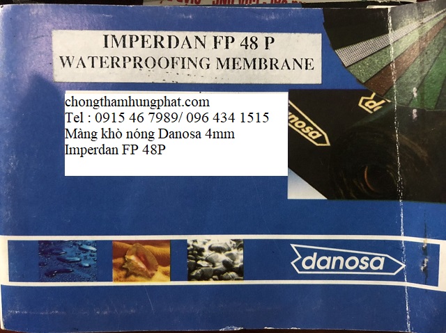 Màng chống thấm Danosa mặt trơn dày 4mm tên nhà sản xuất là Danosa Imperdan FP 48P waterproofing membrane là loại màng chống thấm dạng khò nóng dày 4mm, có tỷ trọng 4-8 - 5 kg/m2, Thành phần được gia cố bằng lõi sợi thủy tinh 60g/m2, bên ngoài phủ nhựa Bitum đàn hồi (SBS).