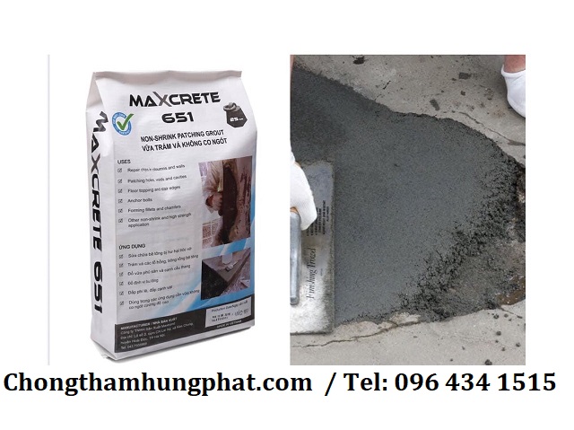 Maxcrete 651 là vữa trám vá không co ngót cường độ cao, Maxcrete được trộn sẵn xi măng Porland với cốt liệu tự nhiên chọn lọc và phụ gia bù co ngót. Vữa sửa chữa Maxcrete 651 là loại sản phẩm vữa xi măng cường độ cao và có xuất xứ từ Singapore. Dòng sản phẩm này chỉ cần trộn với nước sạch theo tỉ lệ và tiến hành thi công xây dựng là được. Maxcrete 651 được ứng dụng rất nhiều trong các công trình xây dựng hiện nay.
