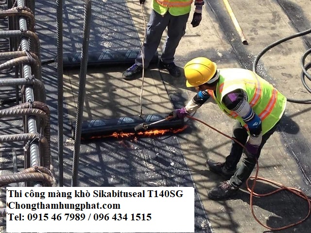Lớp màng sẽ bám chặt lên bề mặt thi công bằng phương pháp khò hơi nóng sử dụng khí gas. Mở cuộn Sika BituSeal T – 140 SG và đặt mặt có lớp phủ lớp polyetylene (mặt láng có logo Sika) tiếp xúc với bề mặt thi công. Mở khoảng nửa vòng và khò hơi nóng vào tấm màng cho đến khi lớp Polyetylene và bitum chảy và phải đảm bảo rằng bề mặt bị khò hơi nóng của Sika BituSeal T – 140 SG chảy và nhỏ thành giọt, và cứ như thế tiếp tục mở và khò hơi nóng. Đồng thời ép chặt tấm Sika BituSeal T – 140 SG lên bề mặt thi công bằng cách dùng ru lô vừa lăn vừa nén chặt. Lặp lại các thao tác trên với các cuộn tiếp theo. Khi nối các Sika BituSeal T 140 SG với nhau thì độ rộng của mỗi nối tối thiều là 100 mm, các mối nối này phải dùng ru lô ép thật chặt.
