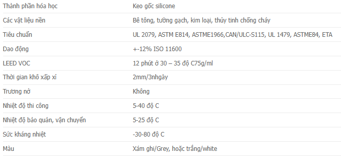 Thông số kỹ thuật Silicone chống cháy CP 601s: