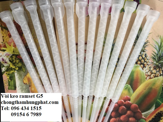 Đối với keo ramset Epcon G5 mỗi thùng keo có 6 tuýp và vòi được đóng ở hộp ngoài. Kích thước vòi keo ramset G5 là dài nhất trong tất cả các loại vòi bơm keo của các loại keo cấy thép khác. Vòi dài của keo ramset giúp cho quá trình bơm keo vào các lỗ khoan có chiều sâu vượt quá yêu cầu của tiêu chuẩn khoan cấy thép được dễ dàng và tiền lợi. Các bước trộn của vòi keo cũng nhiều hơn làm cho quá trình trộn hai thành phần keo cấy thép G5 được nhiều hơn, hiệu quả sử dụng keo cao hơn